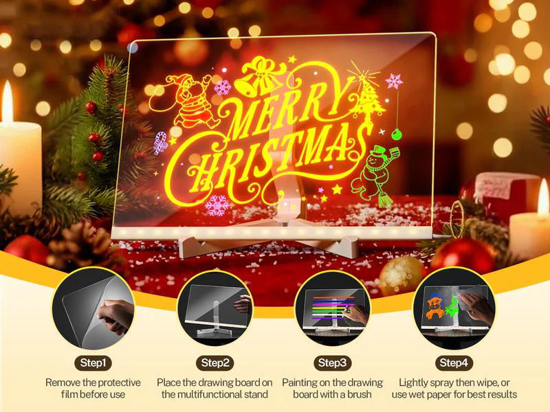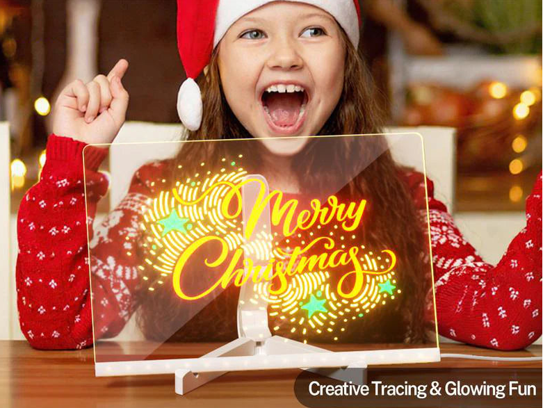 Bring home a glowing burst of creativity. Whether it’s for holidays, birthdays, or cozy family nights, this light-up acrylic board turns every drawing into a vibrant neon display.